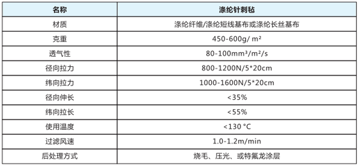 滌綸針刺氈是采用非織造工藝?yán)美w維交錯排列,空隙分布均勻的細(xì)纖維布,以滌綸短纖維與滌綸有捻紗所生產(chǎn)的針刺氈,表面經(jīng)熱軋、燒毛或涂層等后處理,使其表面平整光滑,不易被粉塵所堵塞,此濾料空隙率大,透氣性能較好,用途極為廣泛,抗化學(xué)穩(wěn)定性強(qiáng),不僅可以過濾常溫氣體,而且可過濾含有酸堿的腐蝕性氣體,并可濾水、濾油,是常溫工況。液固分離等領(lǐng)域理想的過濾材料。